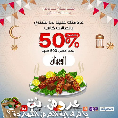 عزومتك علينا لما تشتري اونلاين من مطعم الدهان بمحفظة اتصالات كاش وليك خصم 50% بحد أقصى 500 جنيه.