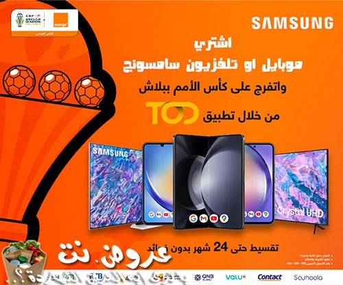 دلوقتي من اورنج اشتري موبايل أو تليفزيون سامسونج واتفرج علي كأس أمم إفريقيا ببلاش من خلال تطبيق TOD مع هدايا زيادة و تقسيط حتي 24 شهر بدون فوائد.