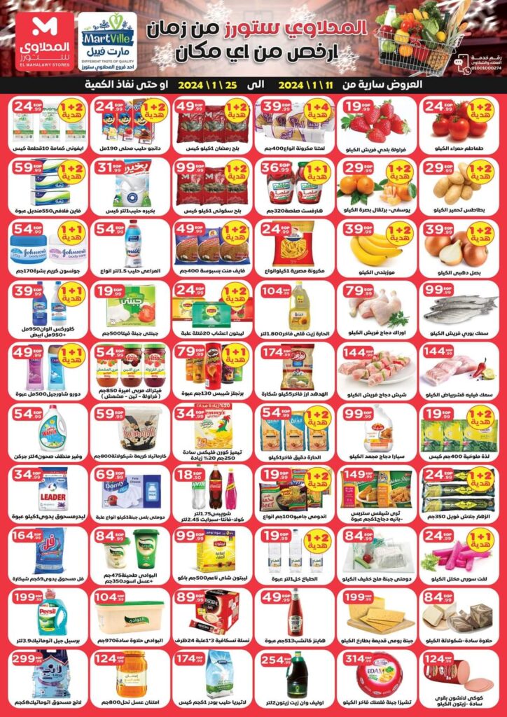 يسرّ عروض المحلاوي أن يعلن عن إطلاق سلسلة من العروض المذهلة حتى 25 يناير، حيث نقدم لعملائنا فرصة فريدة للاستمتاع بتجربة تسوق استثنائية مع توفير كبير. يتميز المحلاوي بتقديم مجموعة واسعة من المنتجات عالية الجودة التي تلبي جميع احتياجاتكم اليومية والأسبوعية.