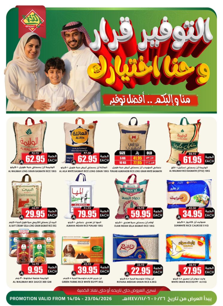 تابع معنا دائمًا أحدث عروض أسواق النخبة 14-23 إبريل 2026 ولا تفوت أي عرض جديد.