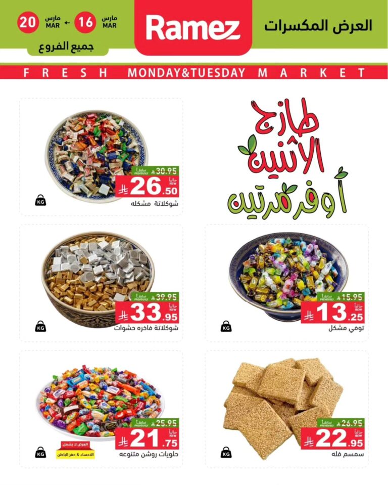 تابع معنا دائمًا أحدث عروض أسواق رامز الإثنين 16-17 مارس 2026 ولا تفوت أي عرض جديد.