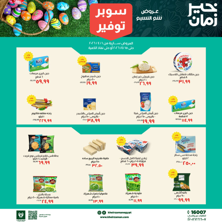 نستعرض اليوم عروض خير زمان 1-15 إبريل 2026، حيث يقدم المتجر أحدث الخصومات على مجموعة كبيرة من المنتجات الأساسية. تصفح