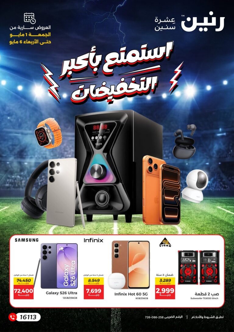 نستعرض اليوم عروض رنين ليوم الجمعة 9 يناير 2026، حيث يقدم المتجر أحدث الخصومات على مجموعة كبيرة من المنتجات الأساسية.