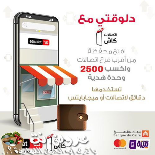 افتح محفظة اتصالات كاش الآن واستفد من العرض احصل على 2500 وحدة هدية للدقائق والميجابايتس