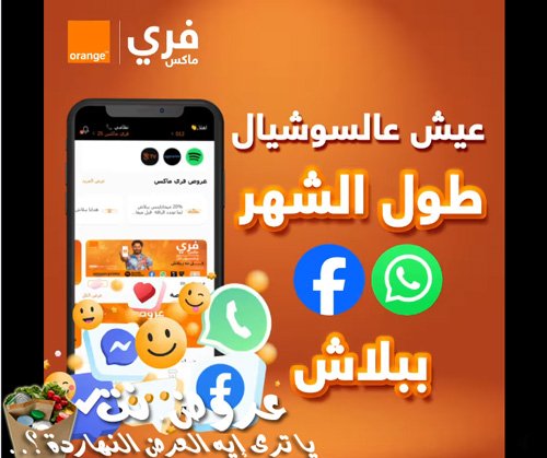 - مع أنظمة فري ماكس، دلوقتي لينا فيسبوك ببلاش طول الشهر وهنكلم اورنچ فري.