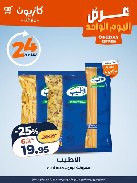 تابع معنا دائمًا أحدث عروض كازيون لليوم الواحد 12 يناير 2026 ولا تفوت أي عرض جديد.