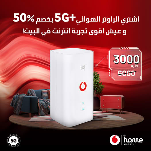 عيش سرعة الـ 5G من البيت بـ خصم ٥٠٪ علي الراوتر الهوائي من فودافون مع عرض 50% خصم تفاصيل عرض