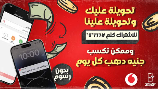 استلم حوالتك لحظياً استلم حوالتك من برة على محفظة ڤودافون كاش وممكن تكسب قد حوالتك مع عرض ضعف حوالتك تفاصيل