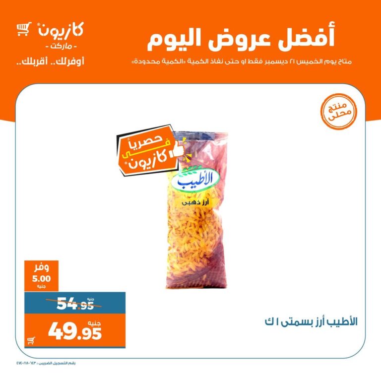 تابع أحدث عروض كازيون واستمتع بخصومات المنتجات الغذائية والأدوات المنزلية والكهربائية وكافة مستلزمات الأسرة المصرية