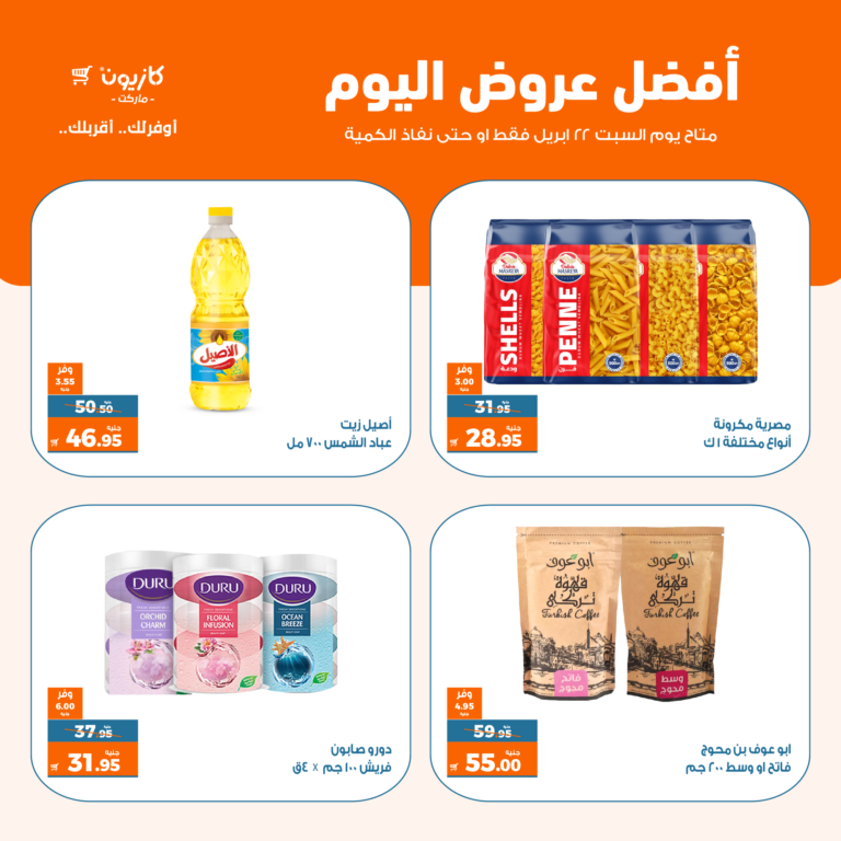 تابع أحدث عروض كازيون واستمتع بخصومات المنتجات الغذائية والأدوات المنزلية والكهربائية وكافة مستلزمات الأسرة المصرية