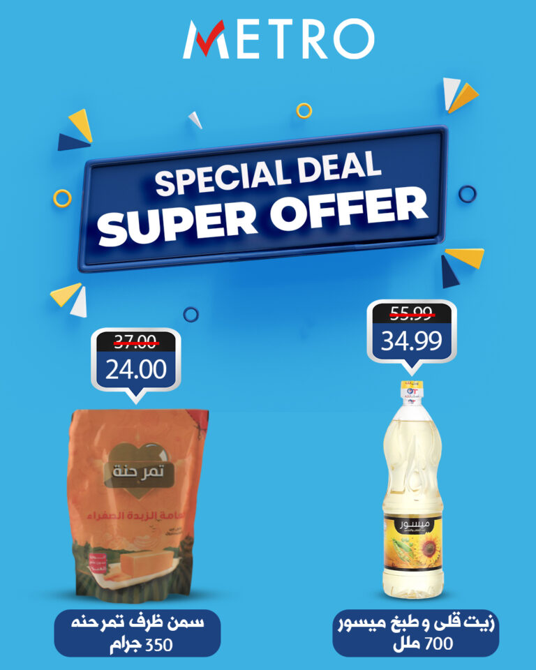 تابع أحدث عروض مترو اليوم بيومه كلها متجمعه فى صفحة واحده .واستمتع بخصومات المنتجات الغذائية والأدوات المنزلية والكهربائية وكافة مستلزمات الأسرة المصرية