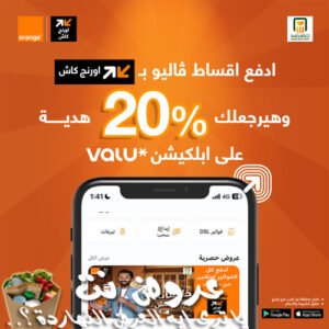 ادفع اقساط ڨاليو باورنچ كاش وهيرجعلك 20% هدية على ابلكيشن ڨاليو ادخل على تطبيق ڤاليو وادفع اقساطك بمحفظة اورنچ كاش.