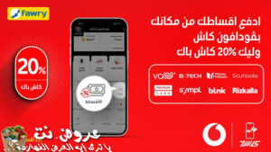 ادفع اقساطك من مكانك بفودافون كاش وليك ٢٠٪ كاش باك وقتك مش ببلاش مفيش اسرع من فودافون كاش. تفاصيل عرض
