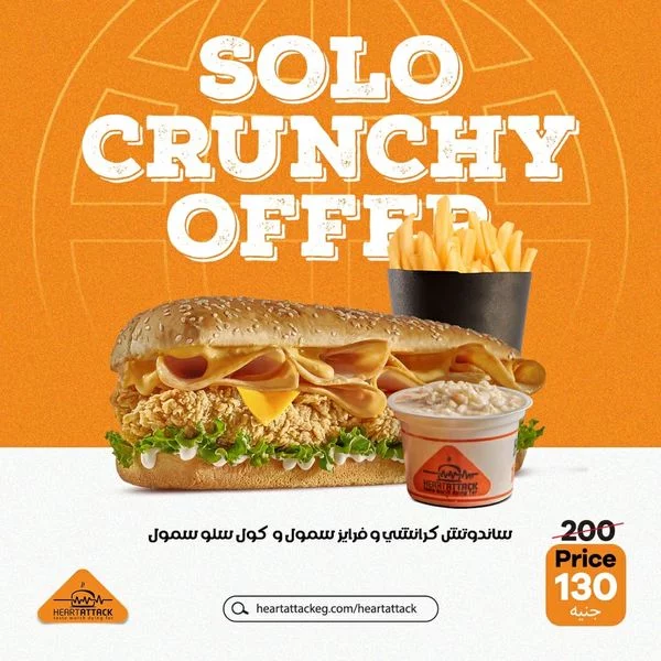 Solo crunchy offer : ساندوتش كرانشي، فرايز سمول و كول سلو سمول بـ 130 بدلا من 200 جنيه Duo chicken